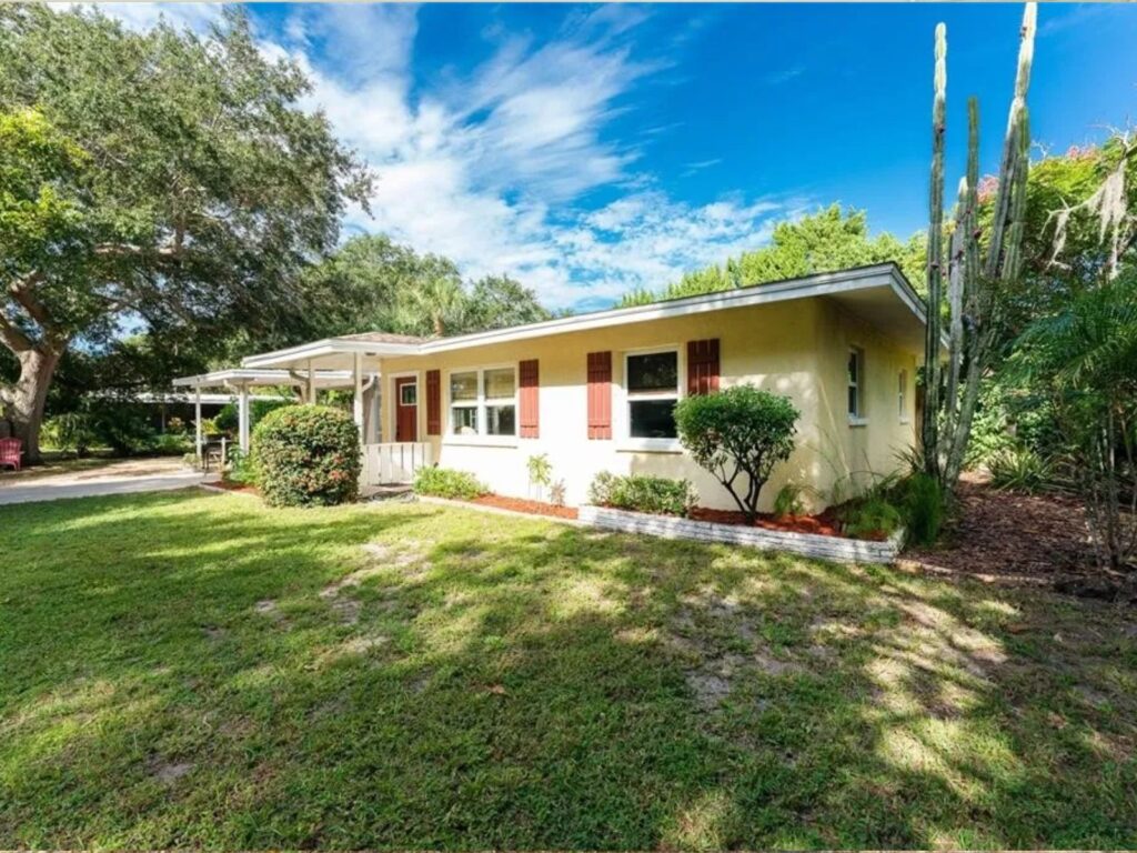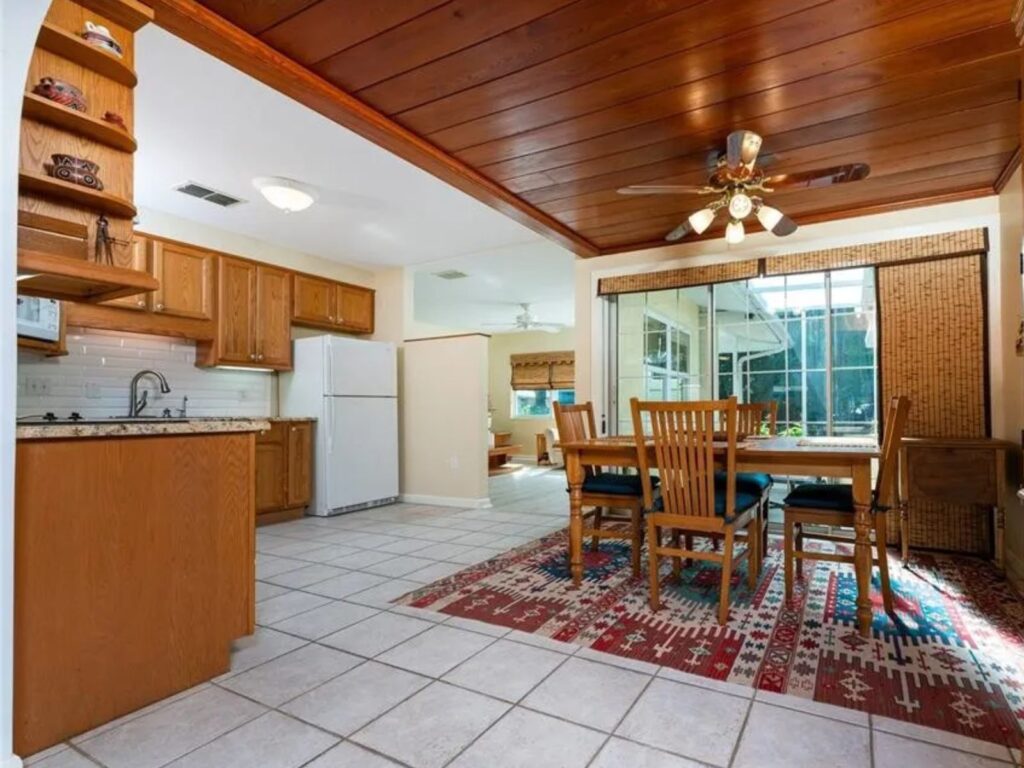 Adorable 2 Bedroom Vacation Home Available for Rent in Venice, Florida!! Explore the warm and welcoming atmosphere of this home, filled with classic Florida charm. Enjoy the tropical surroundings and the unique planked ceiling in the dining room. With both a Florida room and a living room, there is lots of space to entertain guests. Plus, a sunny front porch to have coffee in the morning, and a shaded lanai off of the Florida room to enjoy the beauty of a cool summer evening. You’ll be close to everything. Venice Beach is only 3 miles away…shopping is close…along with golf courses, etc. etc. Come visit our great Florida lifestyle and leave that nasty northern weather behind!